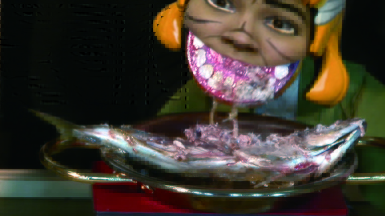 This work takes the form of a puppet show combining live-action video and digital animation. It depicts, through the inner desires of the characters and with a unique humor, the state of a horse mackerel about to be deprived of life as an ingredient in a dish. The title, anima, has the meaning of “light/soul/life” in Latin, but also carries the intention of its creator “to produce an animated work going beyond animation”.